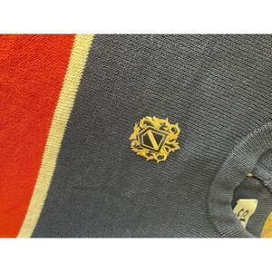 ST. JOHN WOMENS NAVY ORANGE AND GOLD SHORT SLEEVE SWEATER SIZE 10