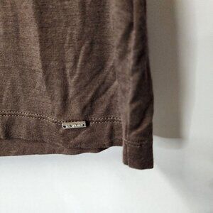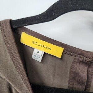 ST. JOHN Womens Short Sleeve Taupe Brown Stretch Blouse Silk Blend ? P Petite