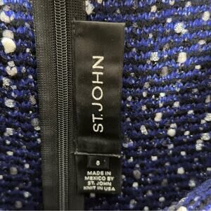 ST. JOHN Wool Tweed Cap Sleeve Dress Blue Black