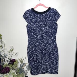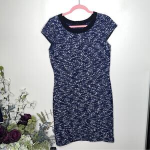 ST. JOHN Wool Tweed Cap Sleeve Dress Blue Black {XX54}