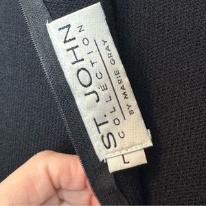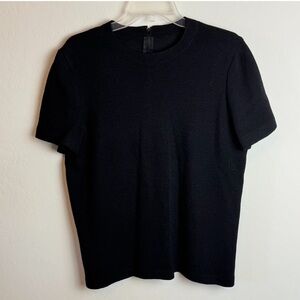 ST. JOHN black basic black ribbed stretchy short sleeve sweater top size…