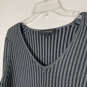 ST. JOHN midnight blue long sleeve silver shimmer stripe knit top size medium