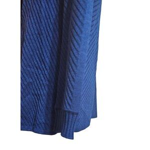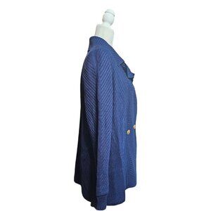 ST. JOHN navy blue knit ribbed long boyfriend cardigan gold buttons size 10