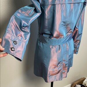 ST. JOHN trench coat Women's Iridescent Jacket - Pink and Blue belted lined