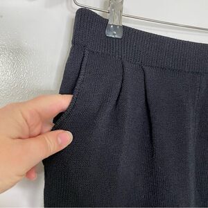 ST JOHN Basics Black Santana Knit Pleated Front Pockets Cropped Pants 6