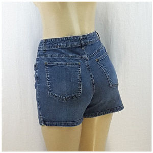 ST JOHN'S BAY, Denim Shorts, size 12 See Measurements, faded streaked medium wash coloring, medium-weight stretchy material, machine washable, 98% cotton, 2% spandex, approximate measurements: 16" waist laying flat, 4" inseam, 10” rise, 4” zipper. SAVE BIG! AUTOMATIC 30% BUNDLE DISCOUNT! ADD TO A BUNDLE!