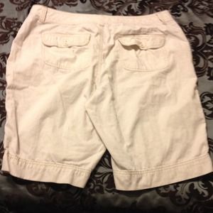 Really comfy longer light tan colored Bermuda shorts. Nice deep front pockets, & the back pockets button closed. These also can be rolled up for those hot Summer days!!