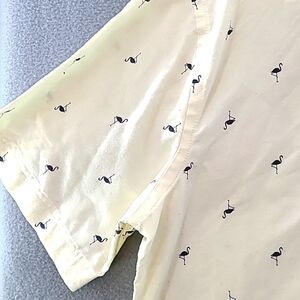ST JOHN'S BAY Men's Yellow w/Blue Flamingo Print Short Sleeve Shirt - Size XXL