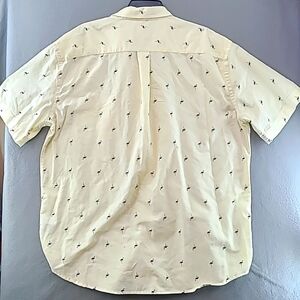 Pre-owned Men's St. John's Bay Yellow w/Blue Flamingo Print Short Sleeve Shirt - Short Sleeve - Button Down - Comfort Stretch - Easy Care - One Front Pocket