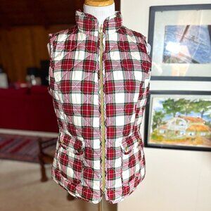 ST. JOHN'S BAY Quilted Ivory Red, Blue, Green Plaid Tartan Vest – S