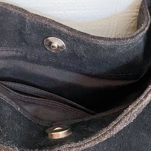 Genuine leather black suede tote bag. Super versatile, goes with every outfit. Magnetic snap closure, open outer side pocket and inner zip pocket.