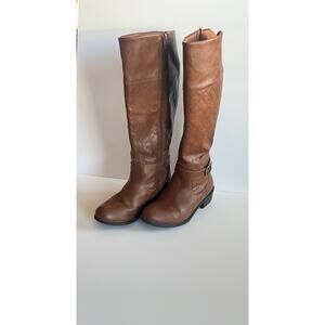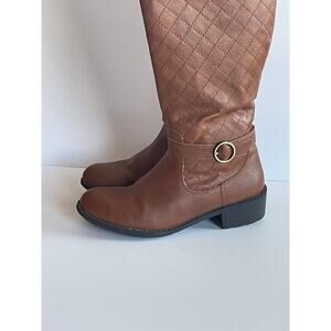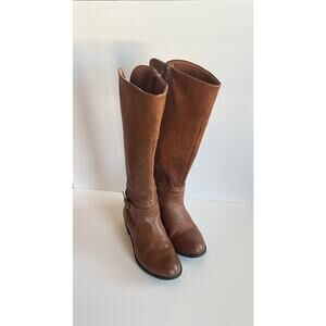 ST. JOHN'S BAY WOMEN'S DEER BLOCK HEEL RIDING BOOTS,COGNAC,SIZE 7