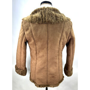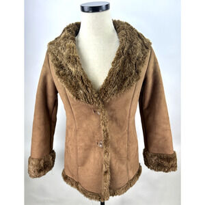 ST. JOHNS BAY Women's Brown Faux Suede Button Down Jacket Faux Fur Lined Size Sm