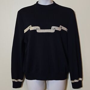 ST. JOHN by Marie Gray Santana Knit Sweater Size Large Ribbon Mock Neck Holiday