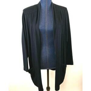 ST. John Basics Size Small Black Button Pockets Open Front Cardigan Sweater