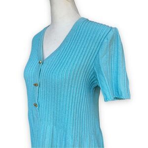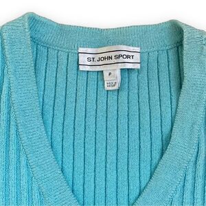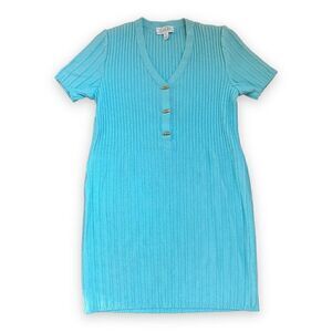 St. John Sport Teal Ribbed Stretch Santana Knit Short Sleeve V-Neck Dress. Size Small.