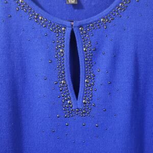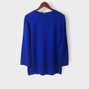 ST. John Sport Tunic Sweater Royal Blue Wool Blend Beaded Keyhole Neck Sz Small