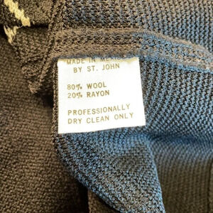 St. John Sport by Marie Gray black and white sweater vest. The vest is super cute with the triangle pattern on the front of the sweater. It is a size petit. It’s super cute and in good condition.