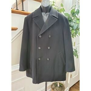 ST. John's Bay Men Black Wool Long Sleeve Double Breasted Pea Coat Size X-Large