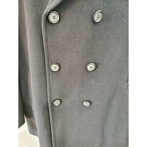 ST. John's Bay Men Black Wool Long Sleeve Double Breasted Pea Coat Size X-Large.
