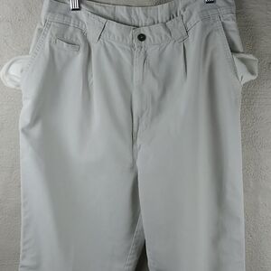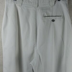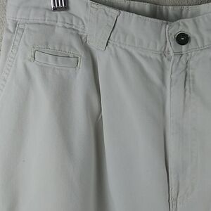 St. John's Bay Vintage Women's Plus Light Khaki High Rise Pleated Front Straight Leg Casual Pants. 100% Cotton. Button/Zipper Front Closure. Faux Detail Waist Pocket. Two Front Side Pockets. One Slit/Button Back Pocket. Minimal Distress On Pockets/Zipper/Hem.Small Mark Front Pocket. Measurements approx. Flat Lay. Waist: 15, Hips: 22.5, Rise 13.5, Inseam: 29,