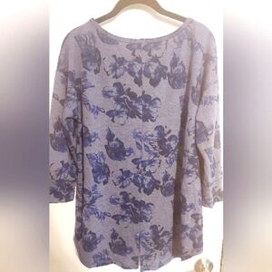 ST. John's Bay Womens blue floral Crew Neck top size Large