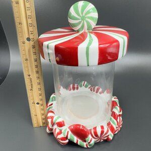 ST NICHOLAS SQUARE Candy Greetings Ceramic Candy Dish Canister Jar Container VTG