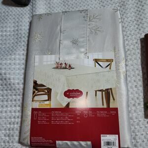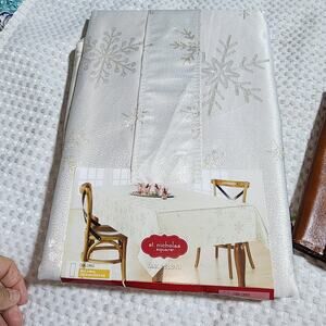 ST NICHOLAS SQUARE NWT OBLONG 60 X 84 METALLIC SNOWFLAKE TABLECLOTH