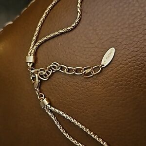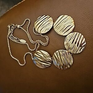 Elevate your style with CHICO'S Goldtone Circle Textured Disc Double Chain Necklace. Featuring intricate goldtone textured discs and a chic double chain design, this versatile piece adds elegance to any outfit. Perfect for both everyday wear and special occasions.