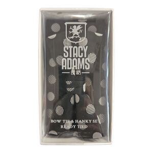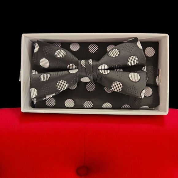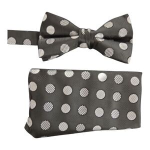 STACY ADAMS BLACK SILVER POLKA DOT FASHION BOXED BOW TIE & POCKET SQUARE SET.