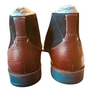 Features a sophisticated blend of black suede and brown lizard-print leather detailing at the heel.