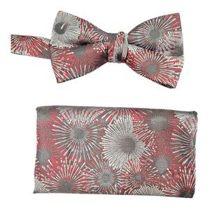 STACY ADAMS BURGUNDY SILVER BLACK FASHION BOXED BOW TIE & POCKET SQUARE SET.