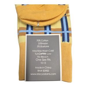 STACY ADAMS MENS PLAID PATTERN DRESS SOCK. YELLOW BLUE. SAS 355-1