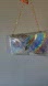 This is a clear iridescent snakeskin-patterned crossbody bag with a gold chain strap.
