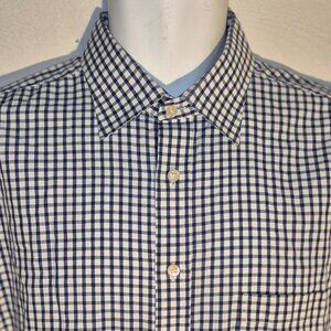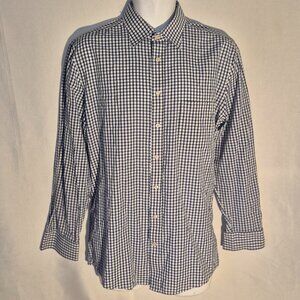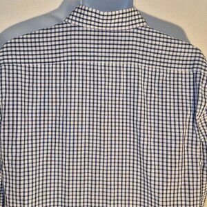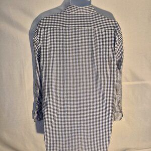 STAFFORD Dress shirt, white, grey and blue small, checked design, 16.5