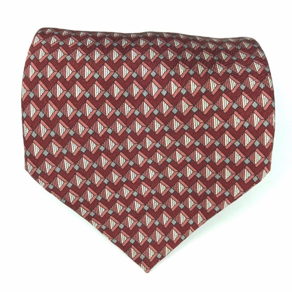STAFFORD EXECUTIVE Men's Tie Silk Red Gray Elegant Necktie Geometric ITALY