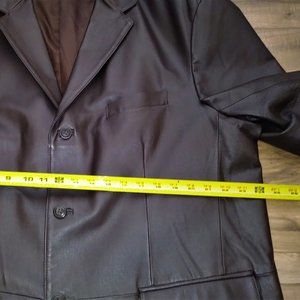 This jacket has been worn a couple of times and is in very good condition with no stains or rips and is dark brown (see measurements in photos)