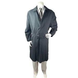STAFFORD Men 42R Raincoat Travel Black Trenchcoat Jacket Removable Liner
