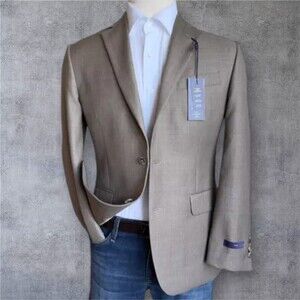 STAFFORD Mens Blazer Sport Coat Two Button Jacket 40R Tan/Brown Wool Blend Suits