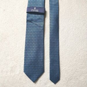 STAFFORD NeckTie Tie Blue Geometric Silk Jacquard 3x58" New