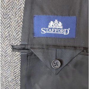 STAFFORD Sport Coat Blazer Mens Size 42S Gray Herringbone Pure Wool Sportcoat