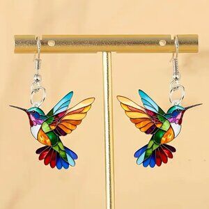 STAINED~GLASS HUMMINGBIRD EARRINGS