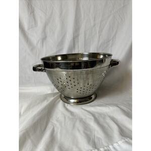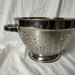 This heavy-duty 5 quart 10-inch colander from Gourmet Standard is perfect for all your food preparation needs. Crafted from durable stainless steel, it features a sturdy base and handles for easy use and transport.
