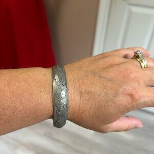Elegant silver bangle with intricate engravings. Perfect for any occasion.