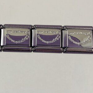 STAINLESS STEEL ITALIAN CHARM BRACELET/9MM/ BRUSHED SILVER w/ PURPLE TRIM/ B…