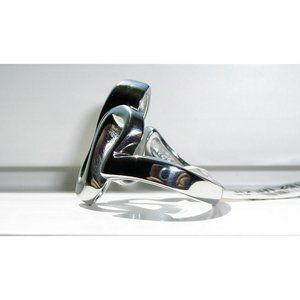This unique women's fashion ring is a modern curvy style and is 12 (mm) wide at its widest point. Solid TK316 Stainless Steel (no plating) is high polished to a mirror finish. Stainless Steel Jewelry is hypo-allergenic, non tarnish and never turns your finger green. It is a darker metal than sterling silver. If you don't see the size you want please contact me and I will see if I can order one for you, most of these rings come in sizes 5-10. NWT Comes from a smoke free home.