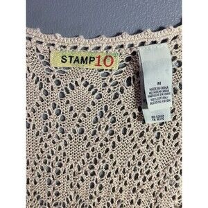 STAMP 10 Sweater Open Crochet V-Neck Boho Cottagecore Hippie Top Womens M Beige