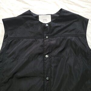 STAMPD Puffer Vest Black Collarless Logo Snaps Pockets Drawstring Waist Medium