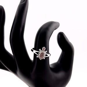 STAMPED 925 Sterling Silver Tiny Turtle Marcasite Ring