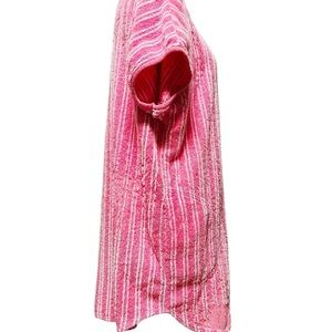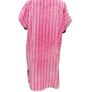 STAN HERMAN WOMEN’S TERRY CLOTH SHORT ROBE SIZE MEDIUM PINK WITH WHITE STRIPES